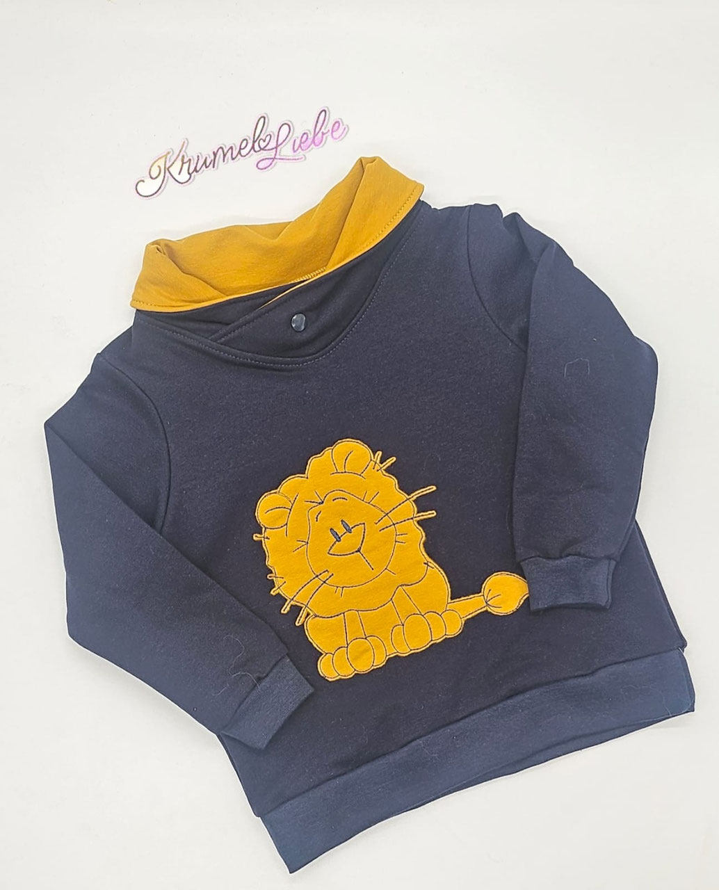 Kragenpullover Dunkelblau mit Löwenapplikation