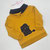 Kragenpullover Senffarbe mit auffallender Löwenapplikation.
