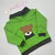 Kragenpullover in grasgrün mit aufwendiger Stickerei.